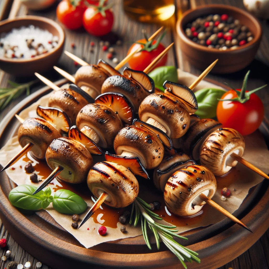 Servieren: Die gegrillten Pilzspieße sind eine köstliche Beilage oder ein leichtes Hauptgericht. Servieren Sie die Pilze mit einem frischen Salat oder gegrilltem Gemüse für eine gesunde und erfrischende Mahlzeit.