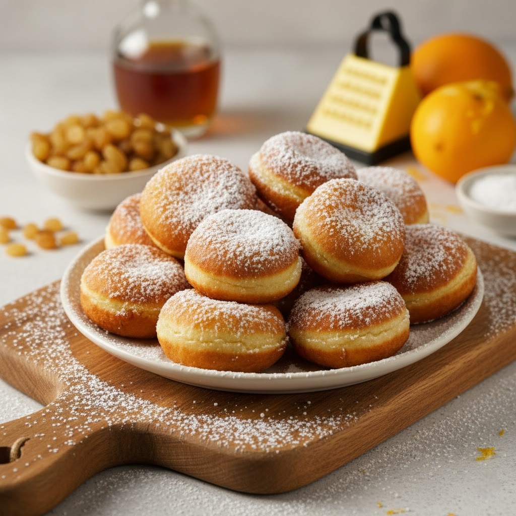 Kroatische Fritule sind kleine, fluffige Feiertags-Krapfen, die oft mit Rosinen, Zitrusschale oder einem Schuss Schnaps aromatisiert werden. Sie werden goldbraun frittiert und mit Puderzucker bestäubt – ein klassisches Adventsgebäck entlang der kroatischen Küste.
