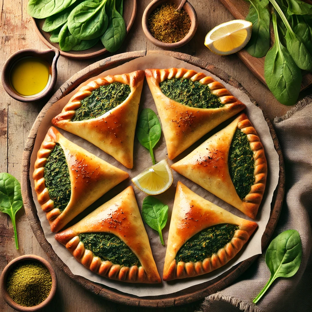 Den Teig dünn ausrollen und Kreise in Untertassengröße ausstechen. Etwas gut abgetropfte Spinatfüllung in die Mitte jedes Kreises geben und leicht andrücken. Anschließend den Teigrand an drei Punkten fassen und zu einem Dreieck zusammendrücken, sodass die Füllung nicht auslaufen kann. Die fertigen Teilchen auf ein mit Backpapier belegtes Blech legen.