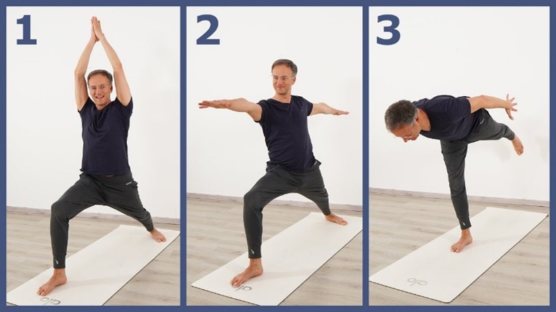 Diese Übung dehnt du kräftigt den Oberkörper, stärkt die Beinmuskulatur und verbessert die Balance.