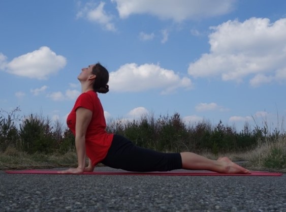 Diese Übung öffnet die Herzgegend und ist besonders wohltuend für die Atemwege. Legen Sie sich hierzu auf den Rücken. Die Arme liegen gestreckt neben Ihrem Körper, Deine Beine sind geschlossen. Jetzt schieben Sie Ihre Handflächen unter das Gesäß, sodass Ihre Daumen sich beinahe berühren. Bei der nächsten Einatmung heben Sie Ihren Brustkorb an, während Sie den Kopf so weit wie möglich in den Nacken legen.